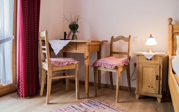 Alle Zimmer sind mit natürlichen Materialien wie Altholz, Naturstein und handgewebten Bauernleinen hochwertig ausgestattet.