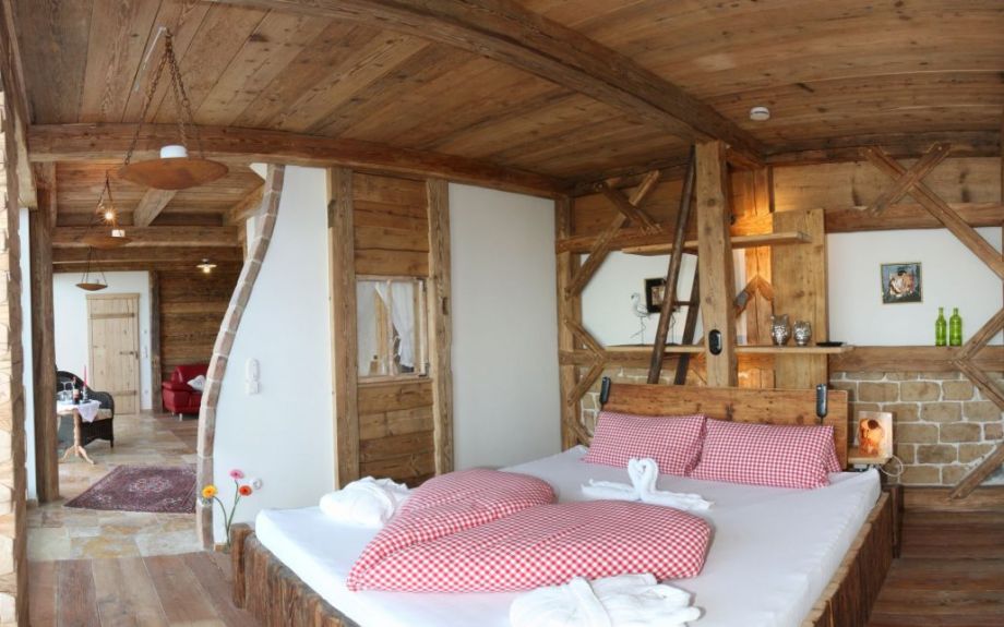 Alle Zimmer sind mit natürlichen Materialien wie Altholz, Naturstein und handgewebten Bauernleinen hochwertig ausgestattet.
