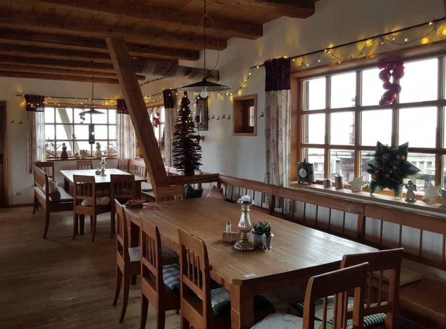 Unser Anbau in Altholzstil hat schon so manche Party bis in die Morgenstunden erlebt. An den Fensterplätzen ist eine kilometerweite Fernsicht möglich.